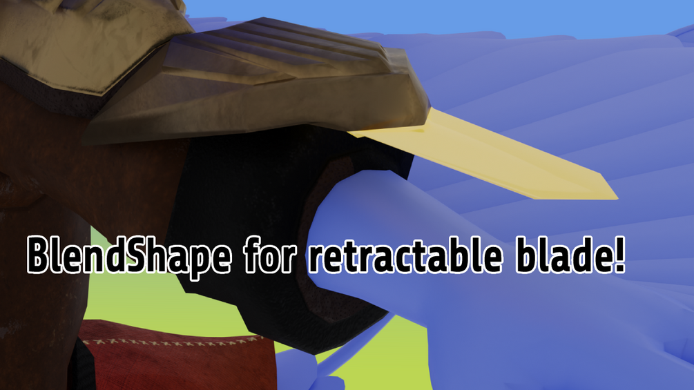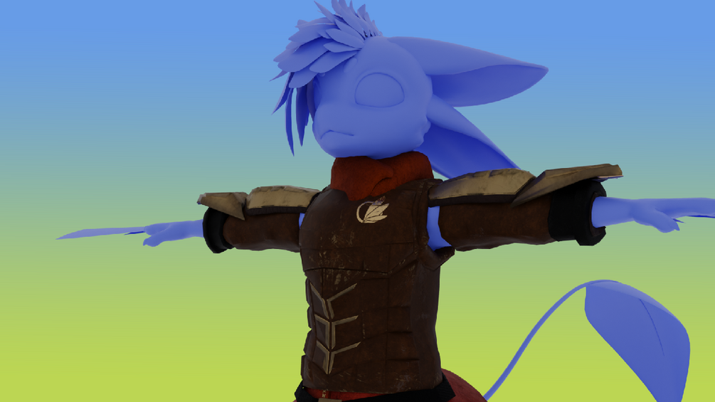 Here is a steampunk inspired armour with a brass chest plate covered with leather, brass stitching and brass Avali logos. The armour also has energy blades built in as a blend shape.